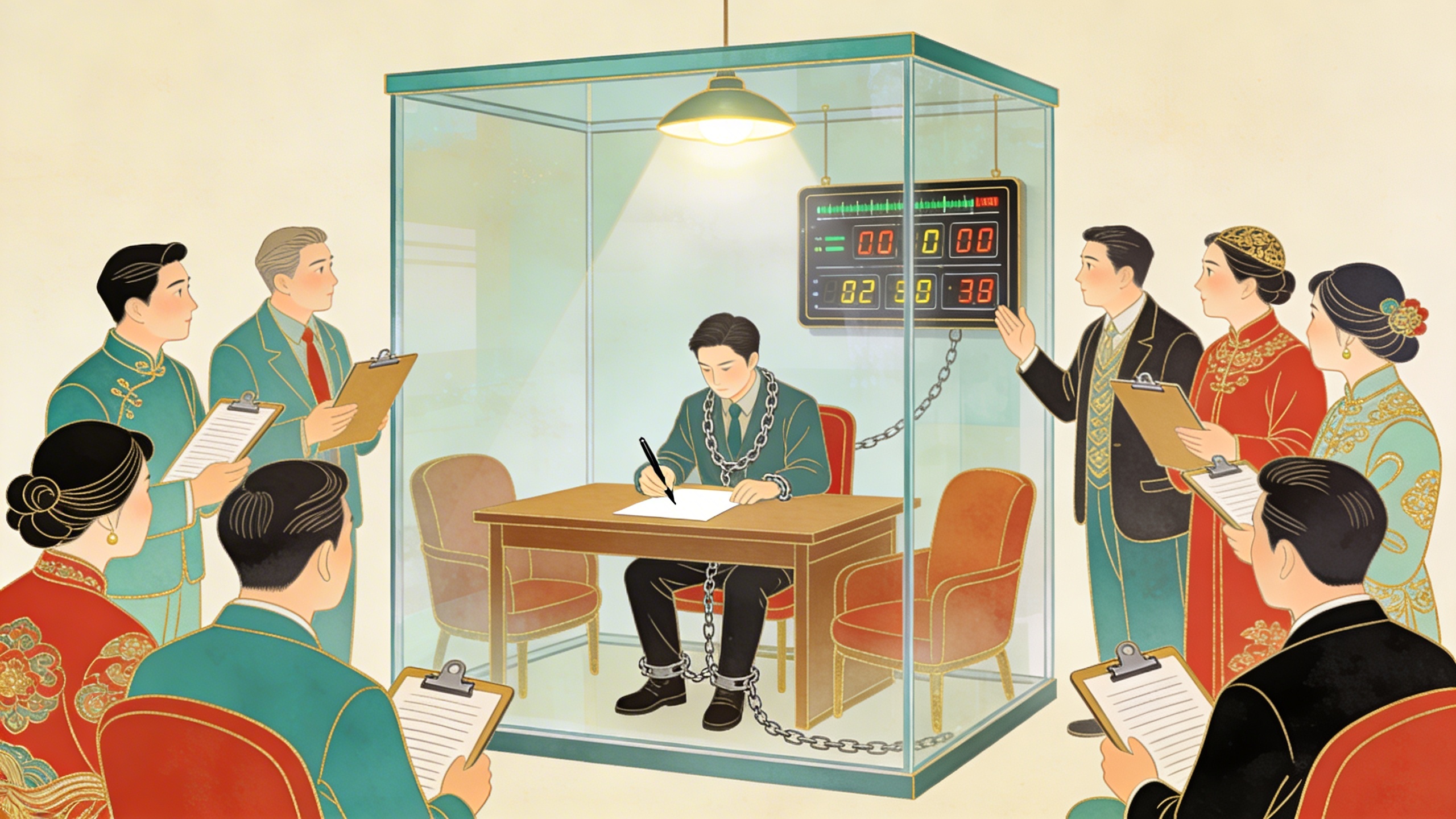 想象一个小说家每两周必须向一群不会写作的人解释每一段的存在理由。委员会评不了文笔,只能数页数、量速度、看大纲。小说家不再为美写作,开始为指标写作。书按时交了。是垃圾。所有人宣布流程成功,因为流程被遵守了。